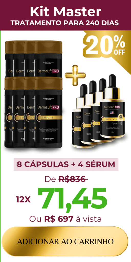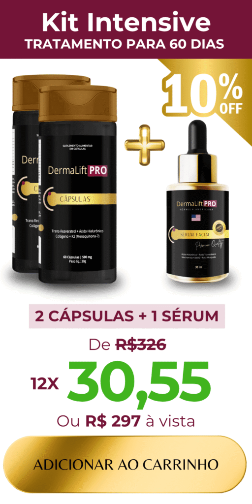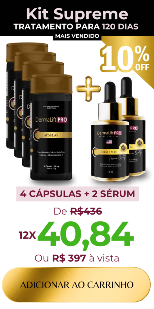 Tudo o que você precisará fazer é tomar 2 cápsulas DermaLift Pro por dia. Já o DermaLift Pro SÉRUM deve ser aplicadoantes de dormir. O melhor horário pra tomar é a noite, próximo ao horário que você dorme, pois é durante esse período que nosso organismo se regenera.